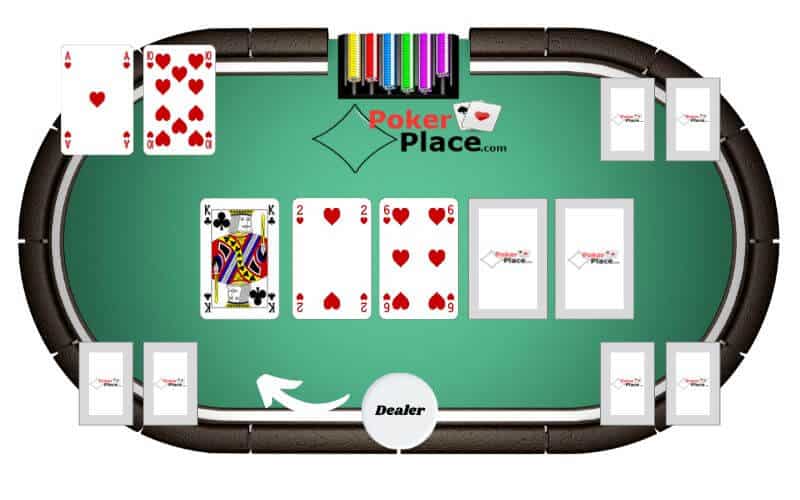 تذكر أنه بعد كشف الفلوب (كشف الأوراق الثلاث الأولى من الأوراق المشتركة بواسطة الموزع)، تختلف الحسابات، وهذا ما سنعرف أكثر عنه لاحقاً.