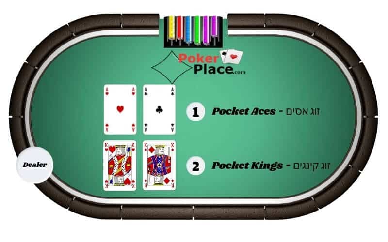 זוג קינגים זו יד הפתיחה השניה בחוזקה בפוקר. ואתם אמורים לשחק את היד כמעט בכל מצב. לא מומלץ לשחק Slow Play כי כול קלף אס – A על הפלופ משנה את מצב הכוחות ביד. אתם תהיו פיבוריטים כנגד כל הידיים חוץ מ זוג A-A.
