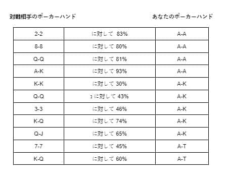 また、プリフロップでハンドを強化する可能性を計算するための別のヒントを提供したいと思います。