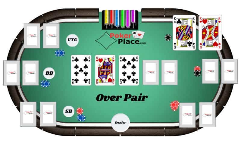 - זוג מעל – Over Pair – שחקן המחזיק זוג ביד שגבוה מכל קלפי הקהילה שנפתחו בפלופ. דוגמא: שחקן מחזיק זוג Q-Q ובפלופ נפתח 6-7-10 לשחקן זה יש זוג מעל הבורד (דוגמא נוספת, ראו תמונה).